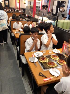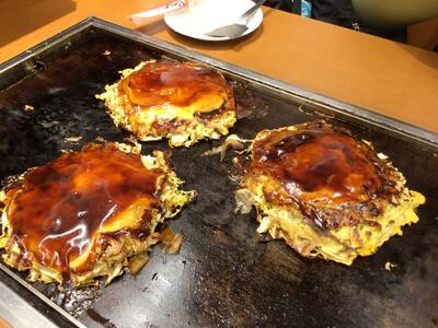昼食はお好み焼き!