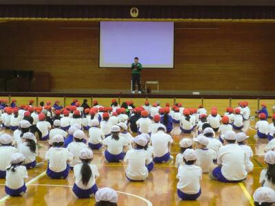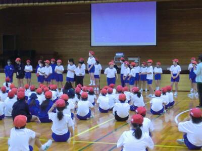 はじめに、新しい友達の紹介をしました。今年度は全校児童305名となりました。