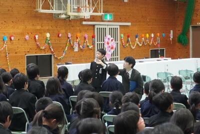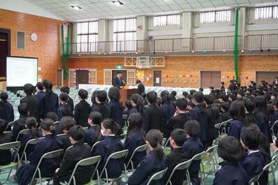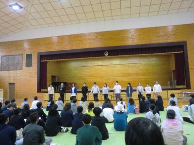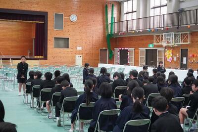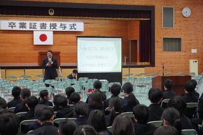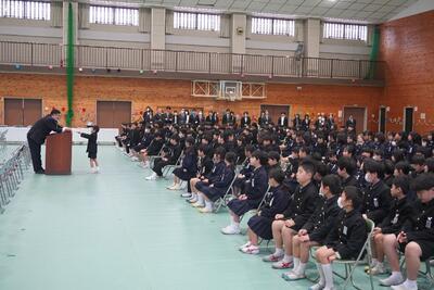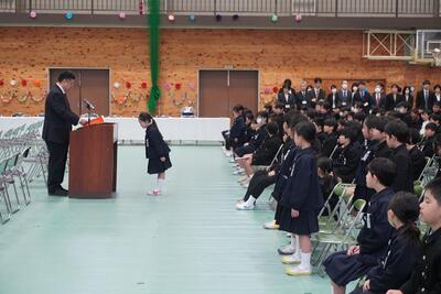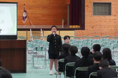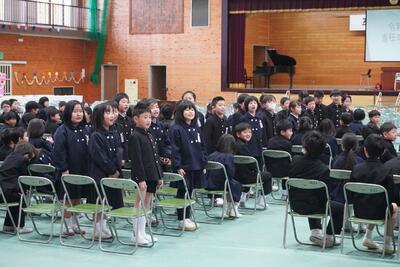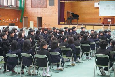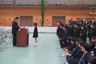 修了式があり、学年代表に終了証を渡し、校長先生の話がありました。みんな上手に聞くことができていました。どの学年も成長を感じることができた式でした。その後、学年代表が、今年頑張ったことや来年度頑張りたいことをみんなの前で発表しました。堂々と発表できました。