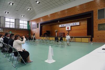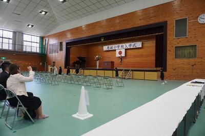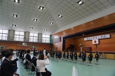 かわいい1年生、44人が入学しました。しっかりと返事をしたり、話を聞いたりできていました。在校生も楽しみに待っていました。月曜からは登下校もあります。元気に学校に来てほしいと思います。
