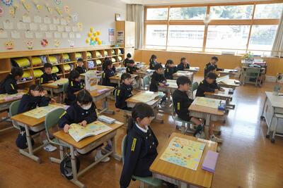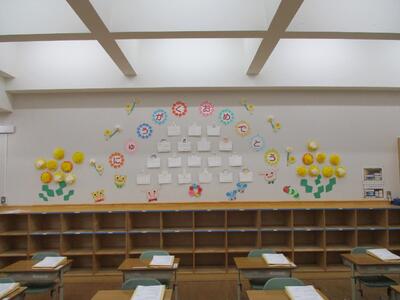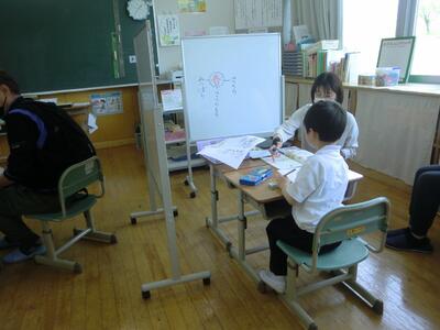 新しい担任の先生と新しい学年の学習がスタートしています。学級をのぞくと、みんなやる気でがんばっていました。1年生もちゃんと席について、先生の話をよく聞いていました。すごい!1年生。