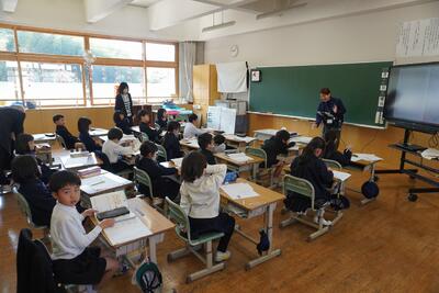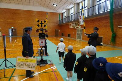 警察署、岡山県安心安全教育講師団、JRの方々、6名が来校され、1年生に横断歩道の渡り方、踏切の渡り方を教えてくださいました。毎日の登下校や地域で過ごす中で交通安全はとても大事なことです。自分の命を守るために大切なことを学びました。