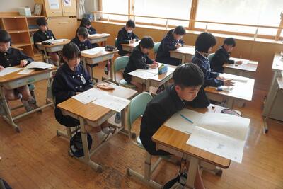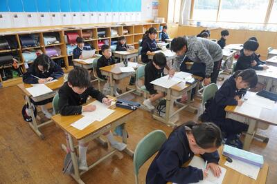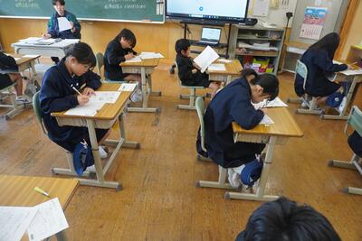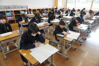 この日は、3年生以上の学年は全国・県の学力テストでした。