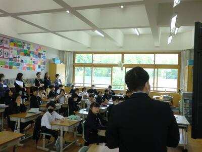 そして、担任発表や先生方の紹介を行いました。担任発表では、発表のたびに歓声や拍手が起こりました。新しい担任の先生と一緒に頑張ってほしいと思います。