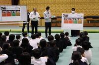税の絵はがきコンクールに、5・6年生が応募し、特別賞や優秀賞、佳作になった人の表彰がありました。新見法人会から3名の方が来校し、賞状や副賞を渡してくださいました。表彰の後には、みんなで記念撮影をしました。入賞された皆さん、おめでとうございました。また、学校賞としてドッジボールをいただきました。