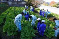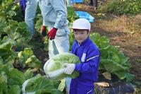 2年生が新見高校の生物生産科の生徒さんと白菜収穫で交流しました。当初は、春に植えたサツマイモの収穫の予定でしたが、サツマイモが野生動物(イノシシ・あなぐま)に食べられてしまい、できなくなってしまいました。そこで、白菜の収穫をすることとなりました。高校生がクイズをしてくれたり、収穫の仕方を教えてくれたりしました。子どもたちは大きな白菜を楽しく収穫できました。収穫した白菜は高校できれいにしてくださり、2年生にいただけるそうです。