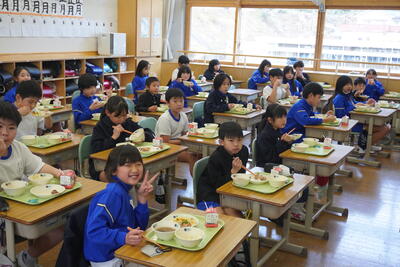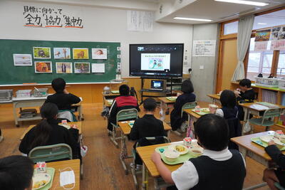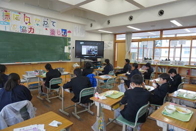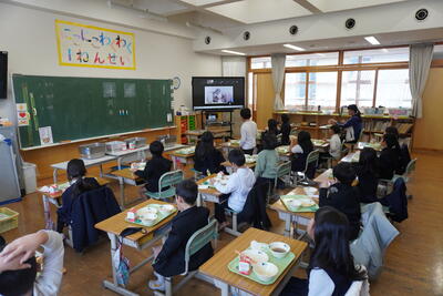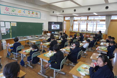 行事食がテーマの給食がありました。「鏡開き」でぜんざいが献立にありました。新見産の小豆や白小豆が使われていました。苦手な児童もいたようでしたがおいしくいただきました。また、その給食時間に、オンラインでにいみ~るの先生が給食指導をしてくださいました。にいみ~るの仕事の様子を教えてくださり、学校に給食が届くまでがよく分かりました。日々、安全・安心な給食、おいしい給食を提供してくださっているにいみ~るの皆さんにあらためて感謝です。