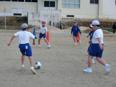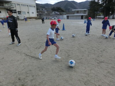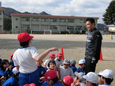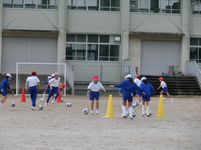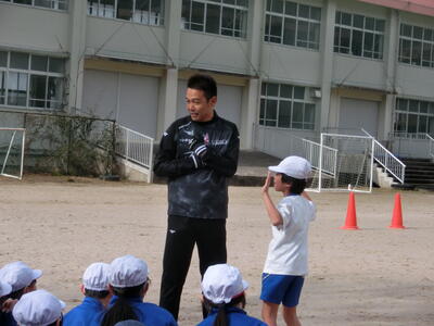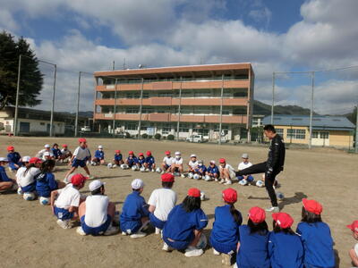 ファジアーノ岡山スポーツクラブから専属のコーチが来校され、子どもたちにいろいろなプログラムを実施してくださいました。この「にじいろキャラバン」は、ファジアーノ岡山スポーツクラブが、クラブ理念である「子どもたちに夢を!」を具現化するため、スポーツを通して自分を好きになり、人と人とのつながりの大切さを知ることで学びに向かう力や主体性を育む力に貢献する活動として行っているものです。この日は、1~6時間目まで、各学年が1時間ずつ活動しました。どの学年も楽しく活動することができました。