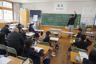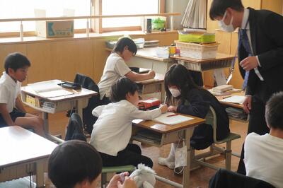 学級の様子 投稿: HP管理者 (15:10) 始業式、入学式から2週間ほど経ちました。どのクラスもみんな前向きに頑張っています。新しい学年になってのやる気が感じられます。1年生も給食を頑張って食べています。準備・片付けは6年生のお兄さん、お姉さんが手伝ってくれています。 【1・2年生 学校探検】 【3・6年生 算数の授業を見てもらいました】 【1年生 給食開始日・算数セット使った】 【4年生 授業】 Tweet -