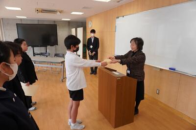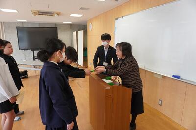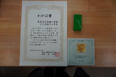 身の回りにある青少年の善意や勇気ある行動をたたえる「岡山県わかば賞」の伝達式がありました。20支会(下熊谷地区)の6年生5人が表彰されました。5人はスクールバスで登校していますが、その降車時に忘れ物や残っている人を確認したり、下級生が安全に降車できたりするように気を配っています。これからも良き伝統ととして続けていってほしいです。